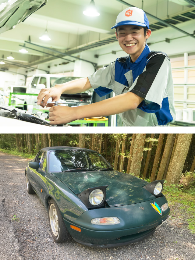 車関係の仕事をしている父の影響で、物心ついた時から車やロータリーエンジンが好きなので、子供のころからずっと車に関わる仕事をしたいと思っていました。中でも自分で車の整備ができる整備士という仕事に就きたいと思い目指しています。